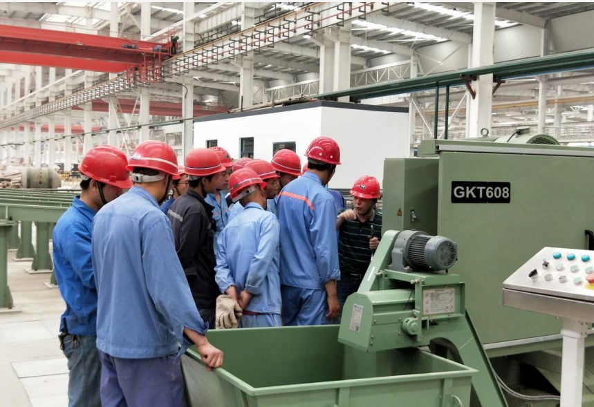 鳳寶管業(yè)集團(tuán)領(lǐng)導(dǎo)對(duì)生產(chǎn)線上GKT608硬質(zhì)合金圓鋸床切削進(jìn)行督查驗(yàn)收!